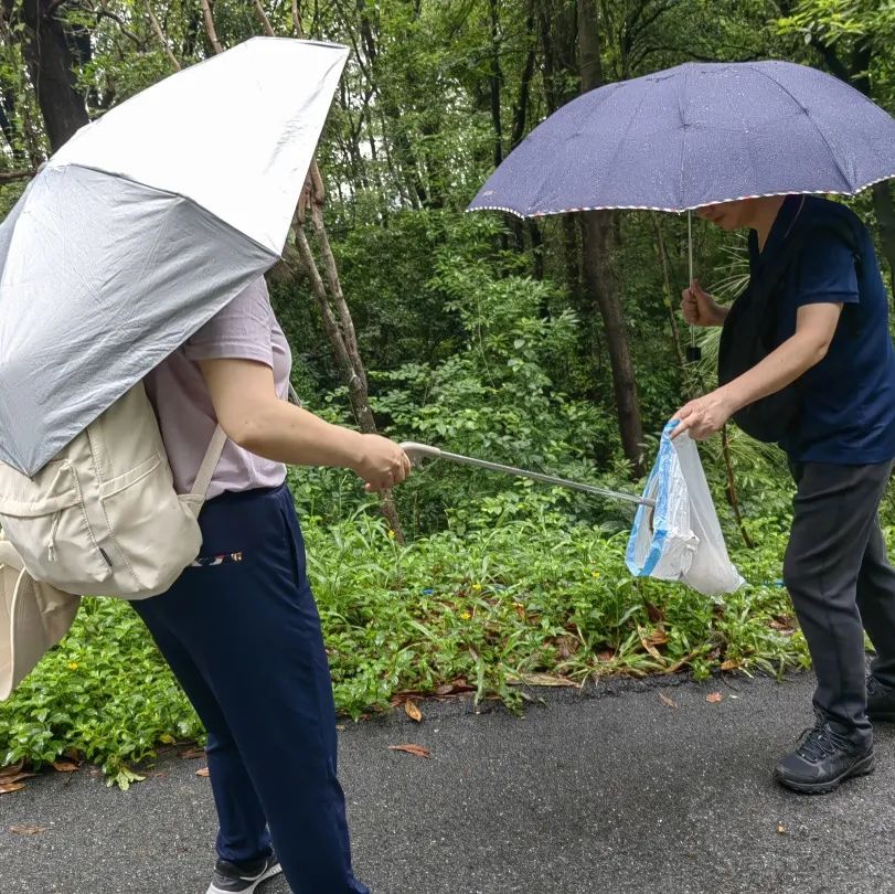 五一假期之际,天公不作美,细雨绵绵,但这并未影响到大伙们志愿服务的热情,同学们穿梭在雨中,大家协同合作,有两两现场组队,有亲子组队,有中小学生搭档组队,也有独立开展环保行的志愿者,在白云山沿途、麓湖公园形成一道美丽的风景,大家的行为值得点赞。