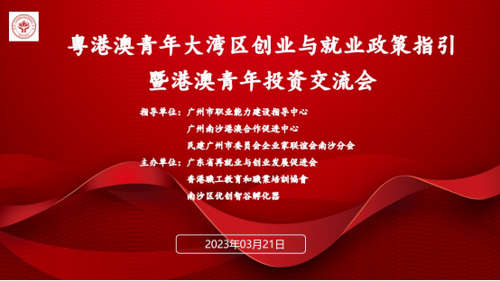 ——粤港澳青年大湾区创业与就业政策指引暨港澳青年投资交流会圆满举办